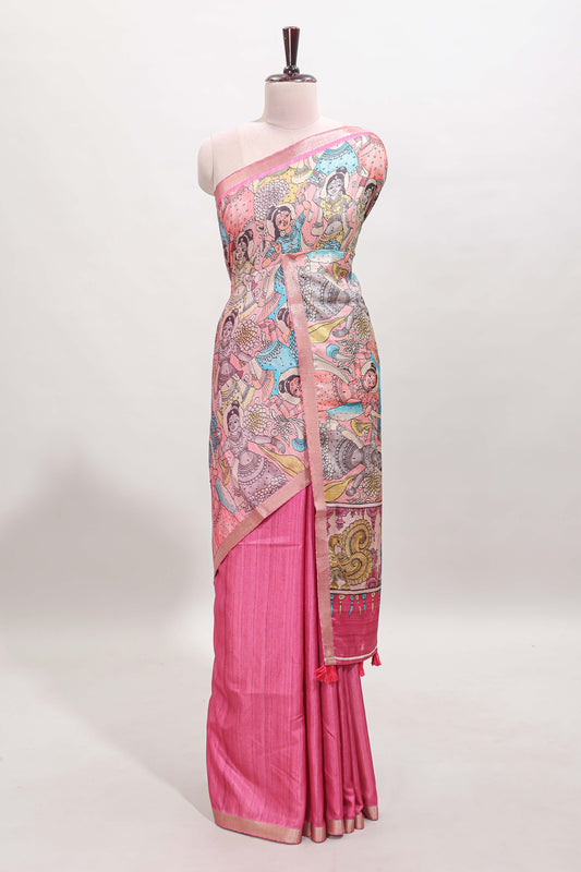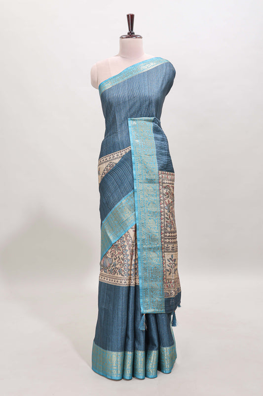 Royal Blue Chanderi Cotton Body and Pallu Kalamkari Print With Zari Border
