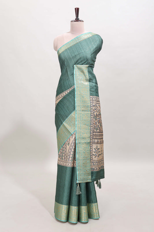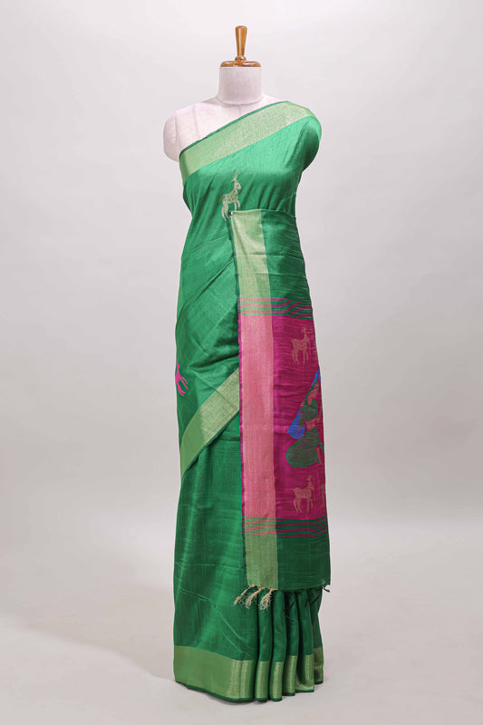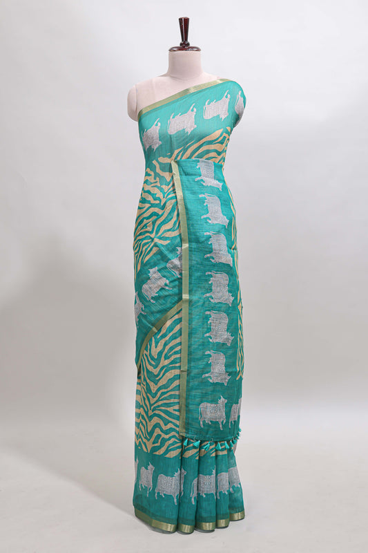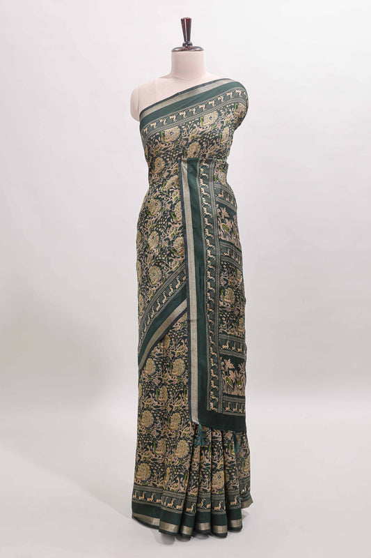 Green Chanderi Cotton Body and Pallu Kalamkari Print With Zari Border
