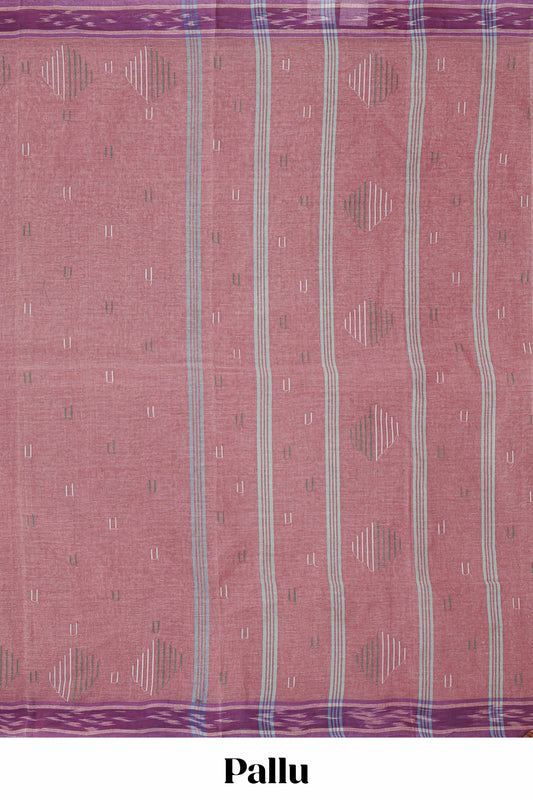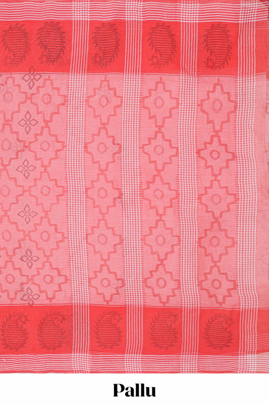 Pink geometric design bengal cotton saree with self border and matching pallu