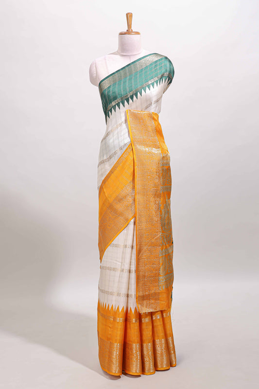 Sandal checked semi soft silk vaira oosi saree with contrast striped pallu and blouse