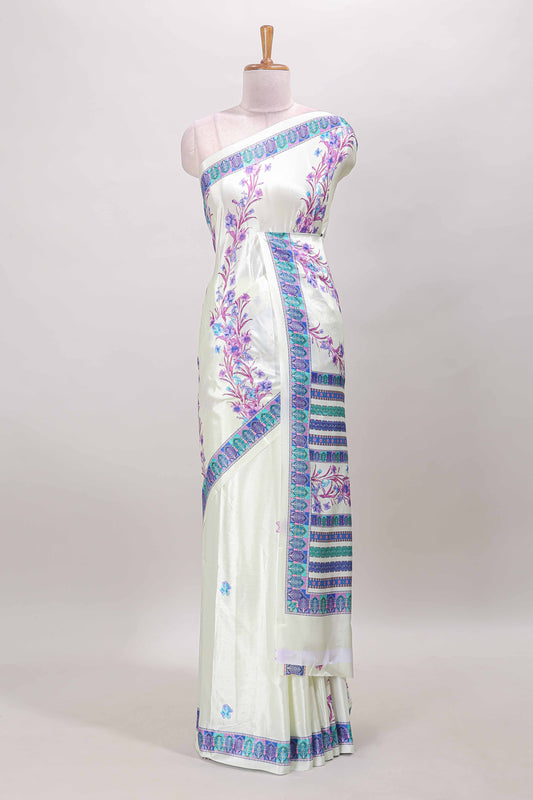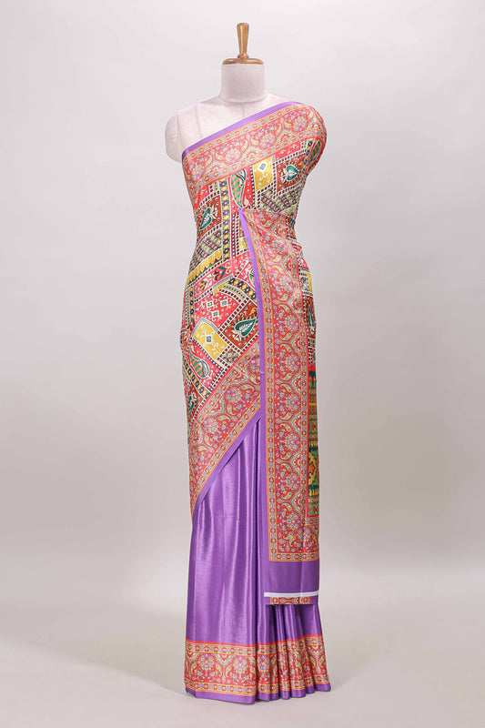 Dark lavender geometric pattern & floral design masakali saree with self border and matching blouse