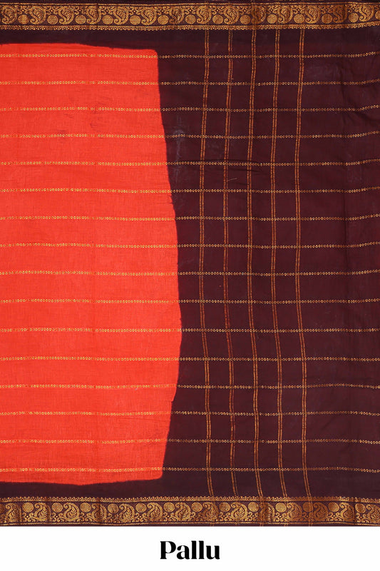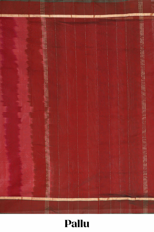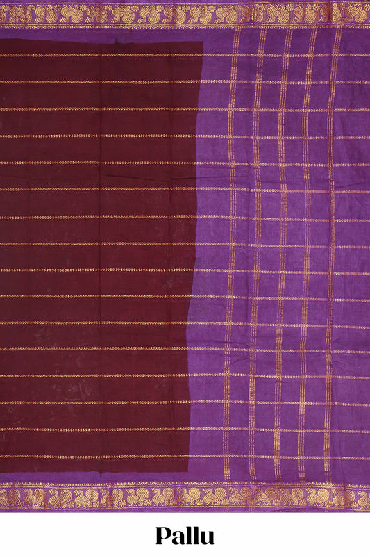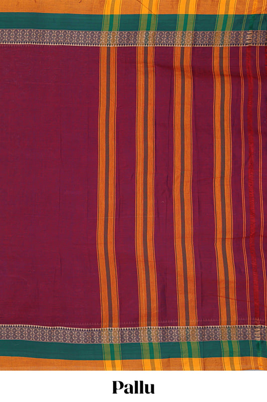 Maroon plain narayanpet cotton saree with contrast border and striped pallu