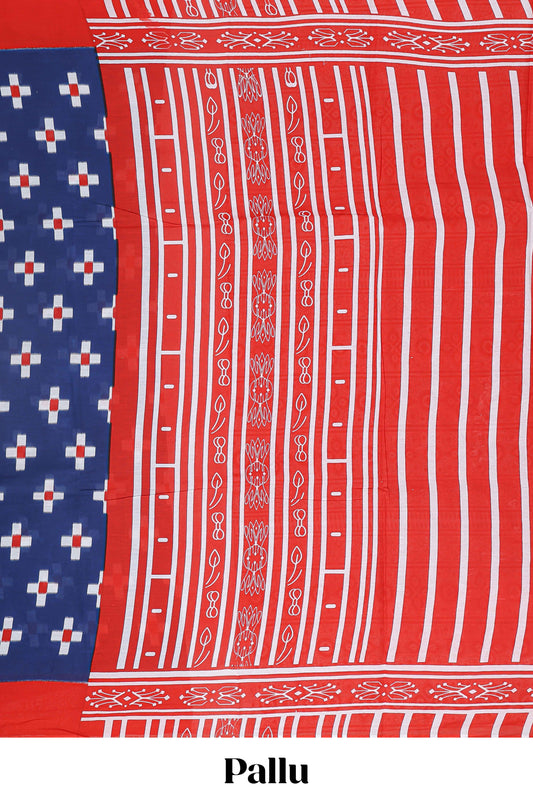 Blue geometric motifs mul mul cotton saree with contrast border and printed blouse