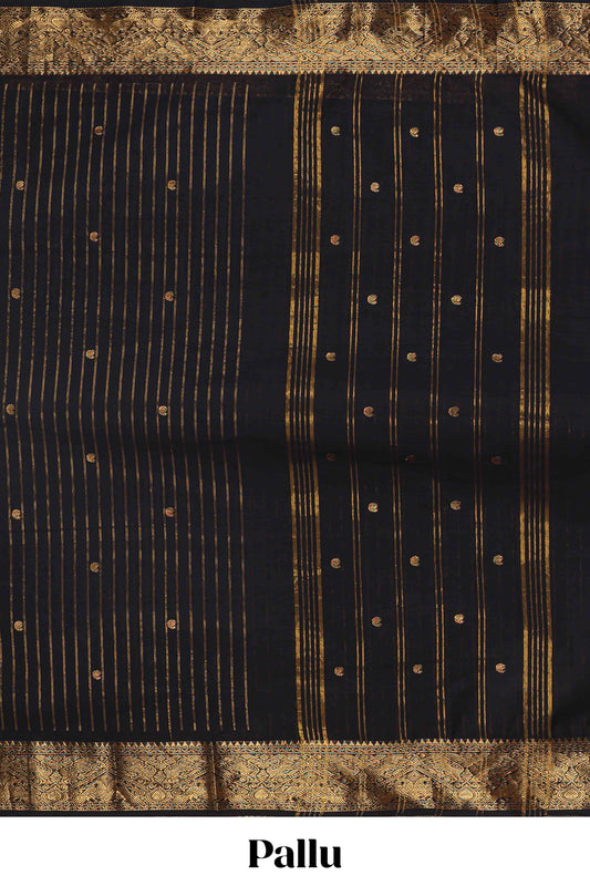 Black zari butta banarasi silk saree with contrast kalamkari style border and matching blouse