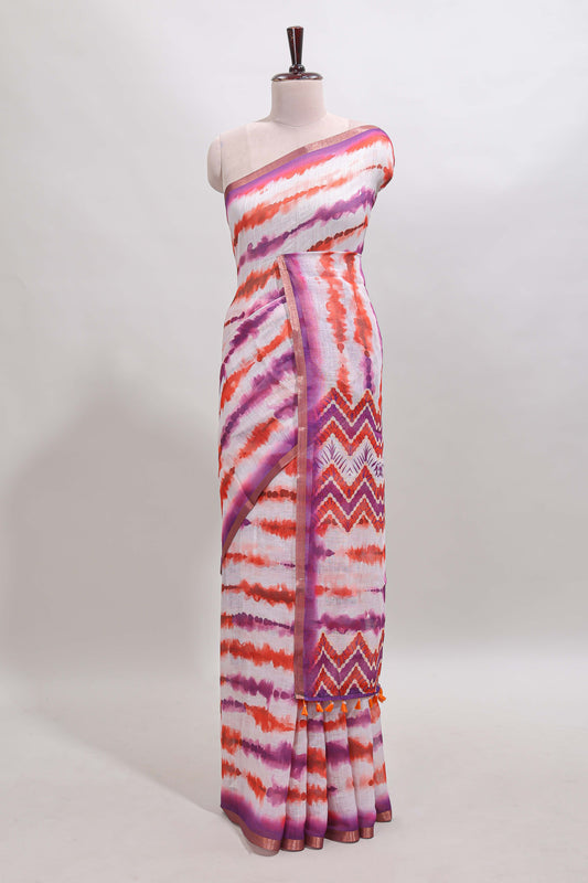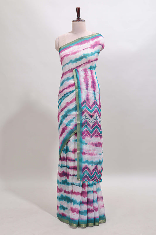Borderless multi color dual shade plain linen cotton saree with contrast blouse