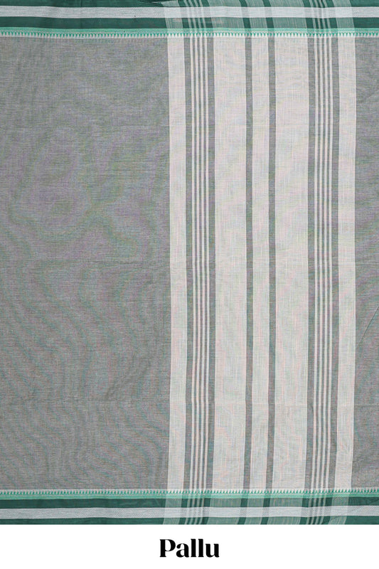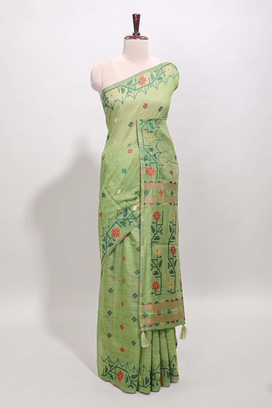 Green floral motifs munga cotton saree with self border matching blouse