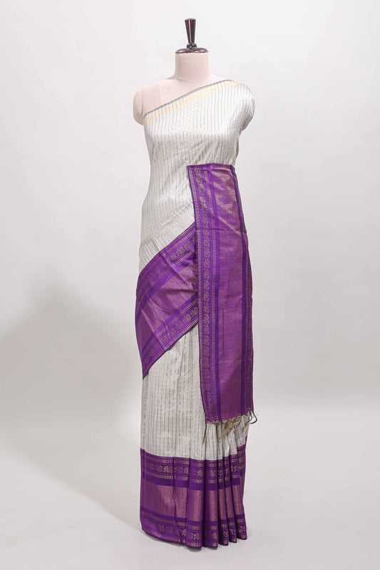 Violet checked zari butta dola silk saree with self zari border and matching blouse