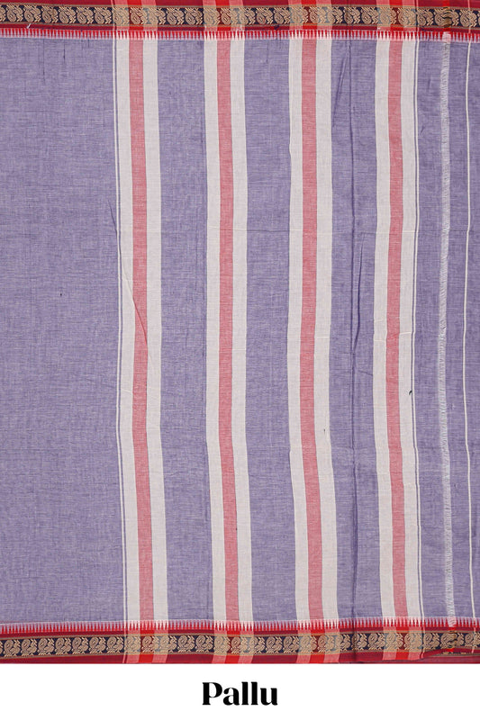 Lavender plain narayanpet cotton saree with contrast border and striped pallu