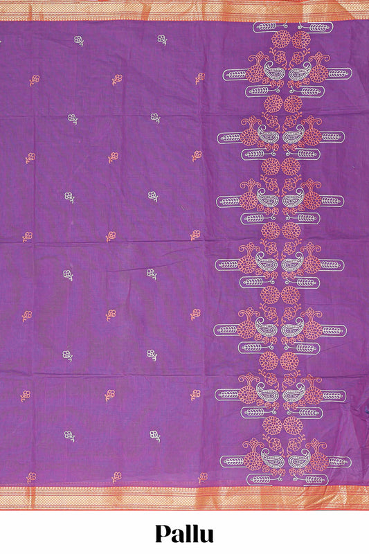 Purple floral design linen cotton saree with self zari border and matching pallu