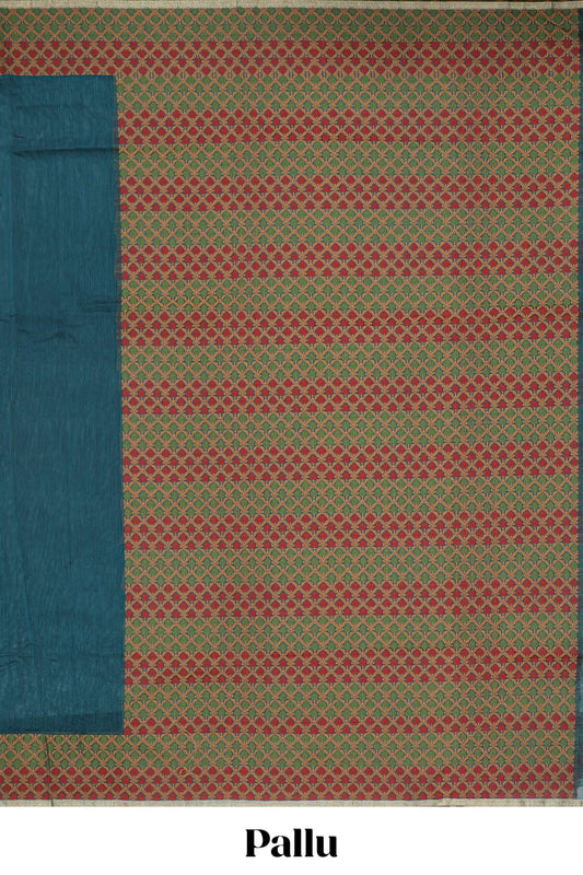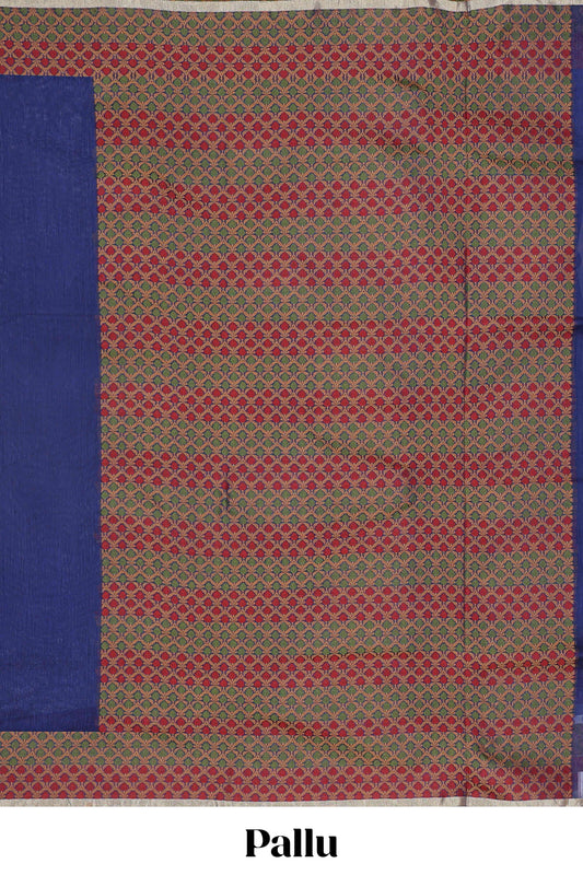 Royal Blue Chanderi Cotton Body and Pallu Kalamkari Print With Zari Border