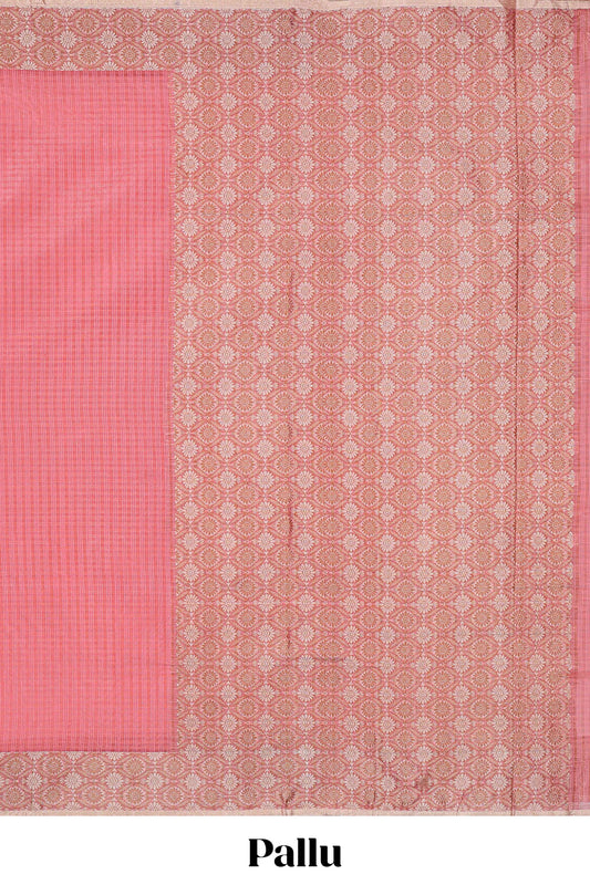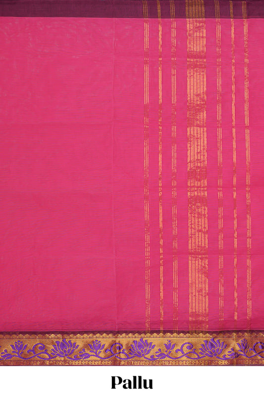 Pink plain venkatagiri cotton saree with contrast zari design border and striped pallu