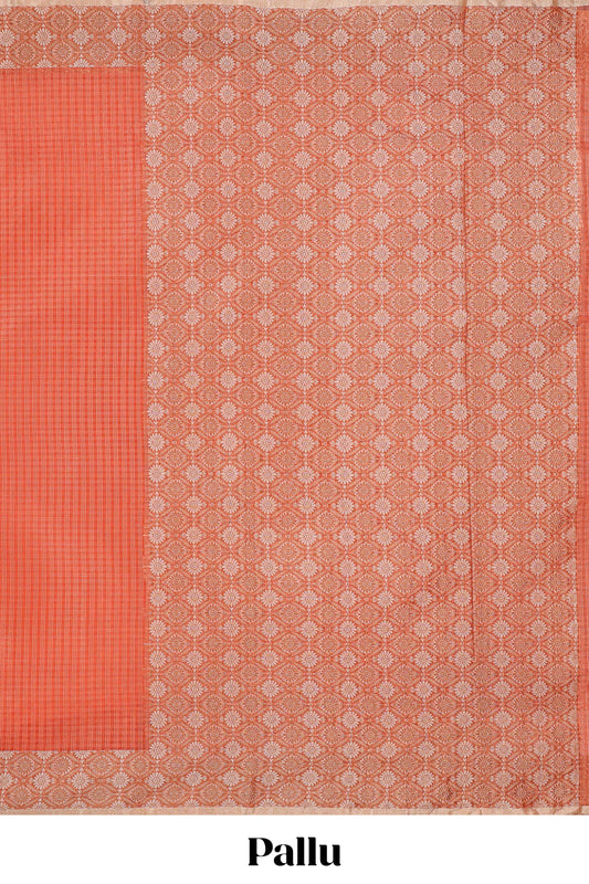 Orange checked kota cotton saree with contrast border and floral design blouse