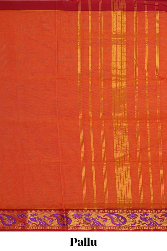 Orange plain venkatagiri cotton saree with contrast zari design border and striped pallu