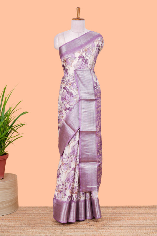 Lavender Semi Banaras Dola Silk Floral Printed With Jacquard Border