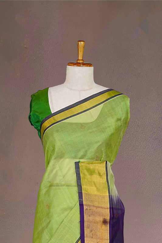 SaleAqua Blue Swayamvara Pattu Saree with Elegant Zari Border & Contrast Purple Zari Woven Pallu