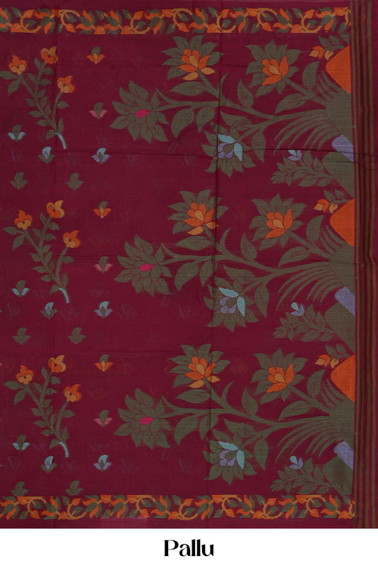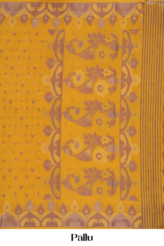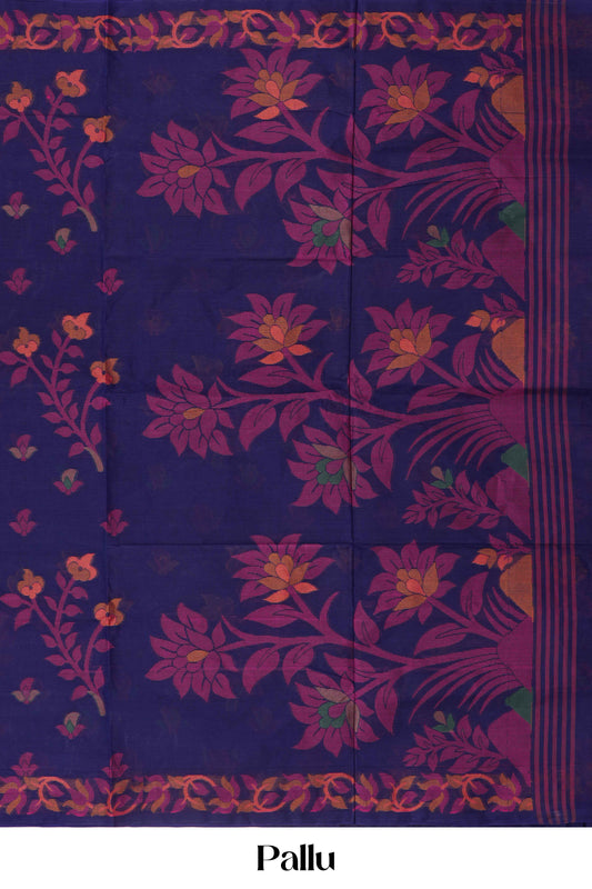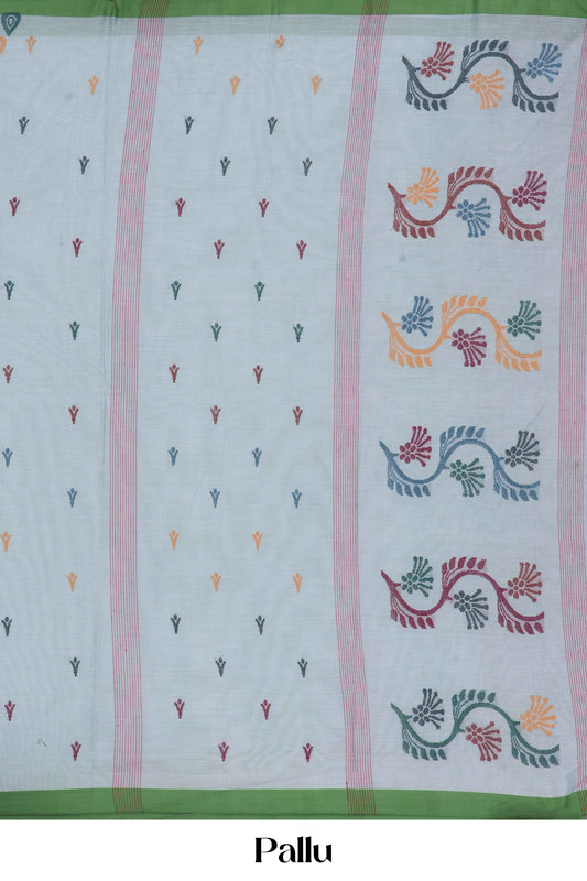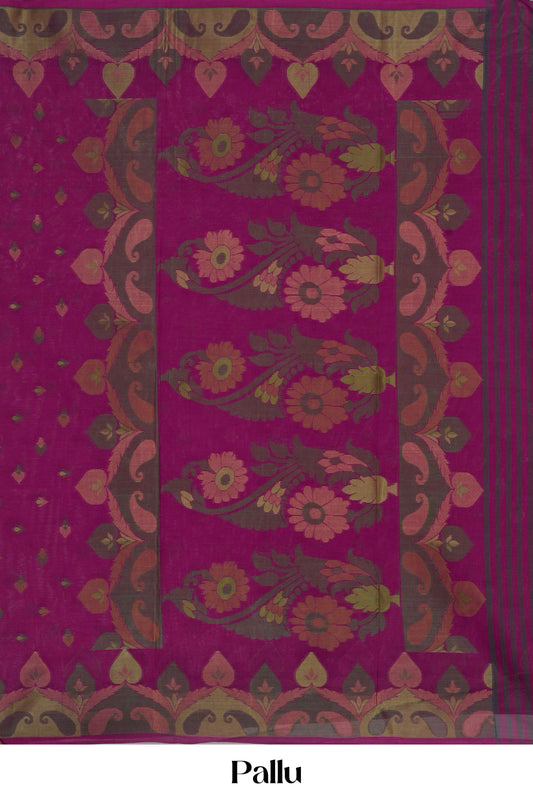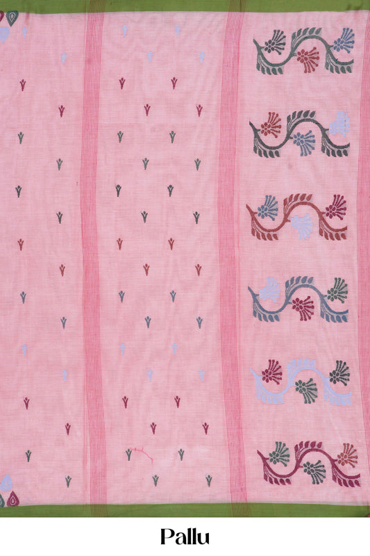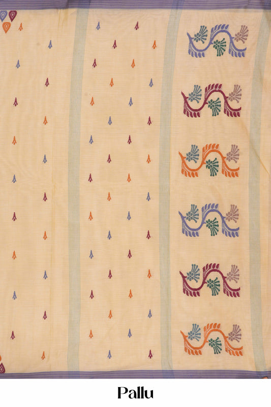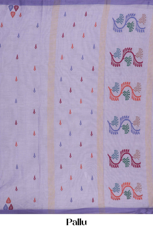 Lavender Bengal Cotton Saree with Multicolor Thread Butta and Artistic Pallu
