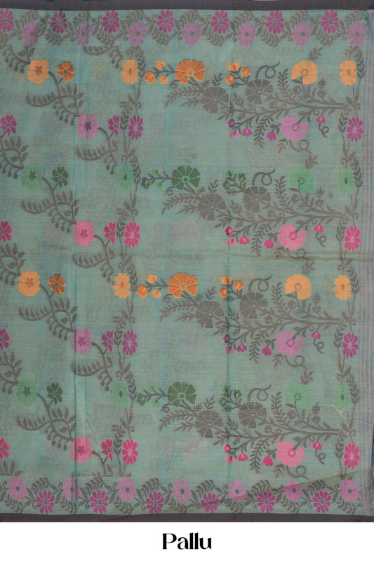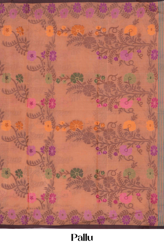 Pink Bengal Cotton Saree with Swirl Pattern, Thread Butta Work & Geometric Motif Pallu