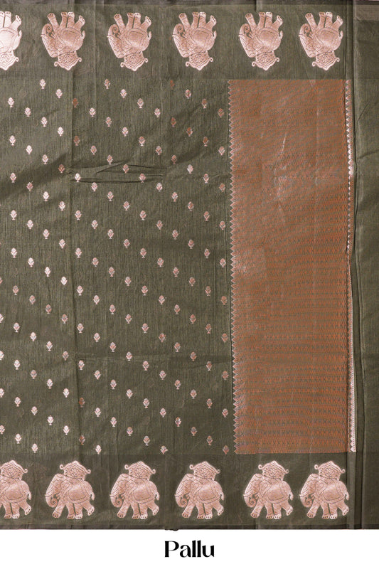 SaleCream Jacquard Work Swayamvara Pattu Saree with Golden Zari Woven Border & Silver Highlighted Pallu