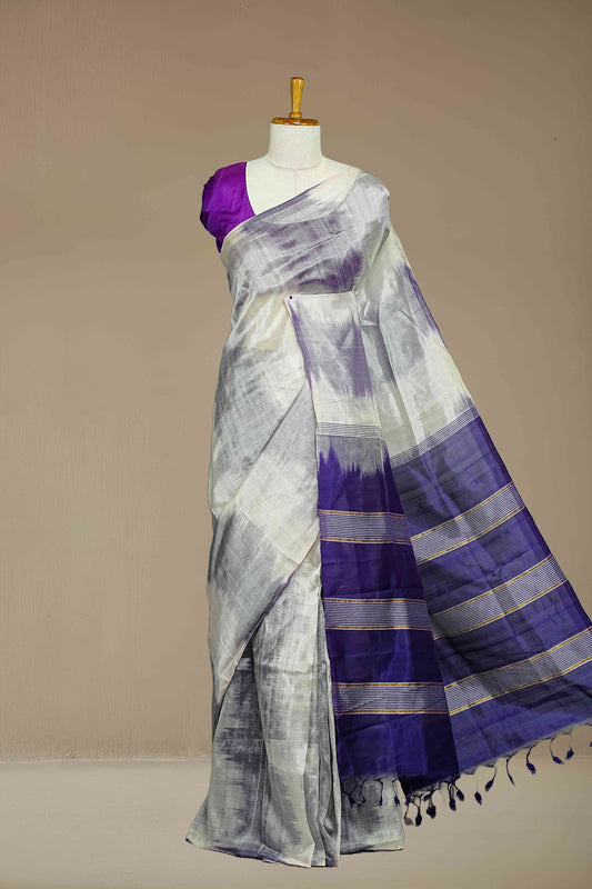 SaleIvory & Gold Borderless Kanchipuram Pure Silk Saree with Subtle Zari Checks