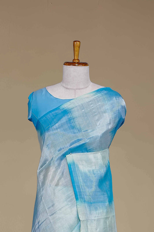 SaleIvory & Teal Borderless Kanchipuram Pure Silk Saree with Zari Body Buttas