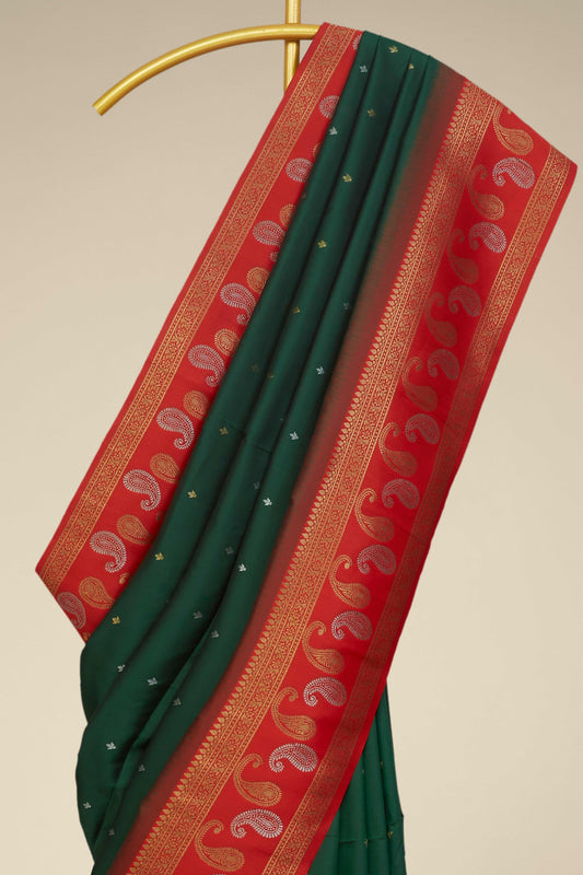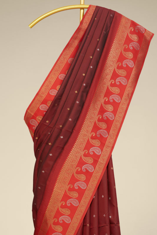 SaleKanchipuram Vairaoosi and Checks Silk Saree in Wine with Contrast Olive Zari Border