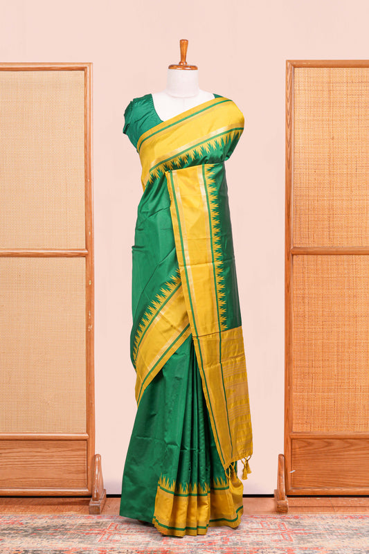 Green Art Silk Saree With Plain Body Retta Petta Border And Contrast Intricate Gold Zari Stripes Pallu
