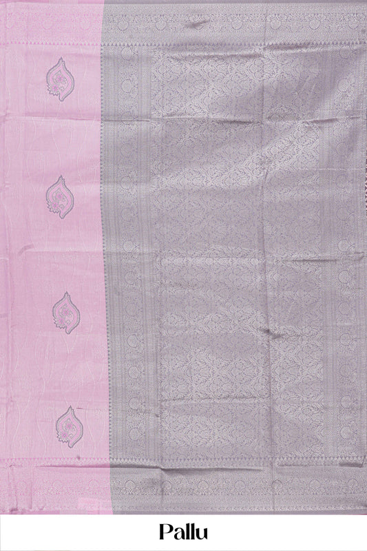 SalePink Lichi Silk Saree With Silver Zari