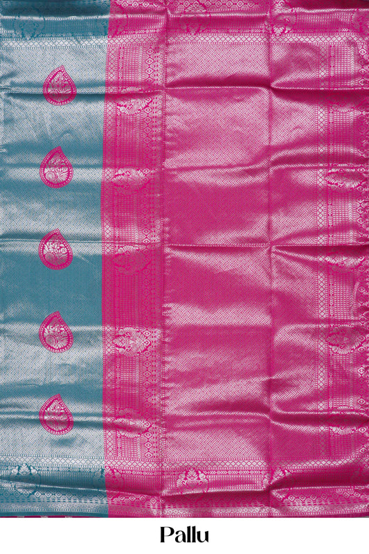 SaleBlue Lichi Silk Saree Silver Zari