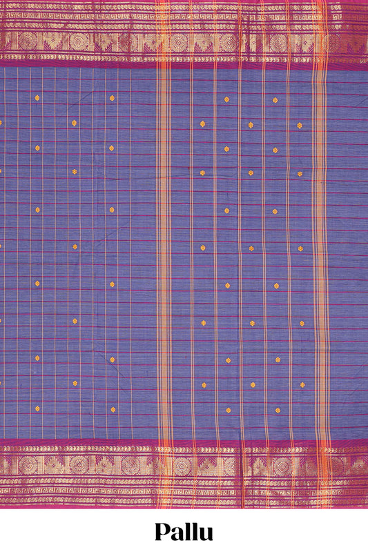 Lavender checked zari butta chettinad cotton saree with contrast zari border and striped pallu