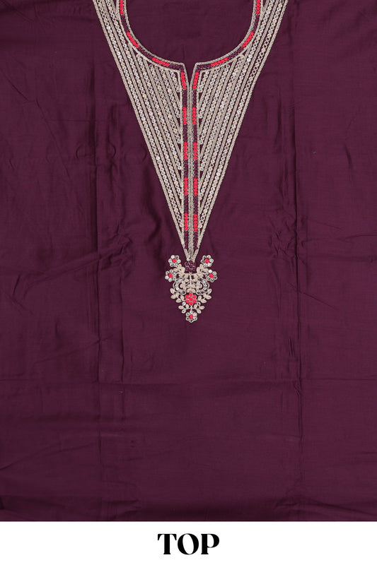 Violet embroidered cotton silk chudidhar material with sequin thread work and contrast dupatta
