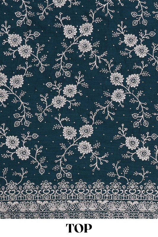 Green embroidered cotton silk chudidhar material with sequin thread work and contrast dupatta