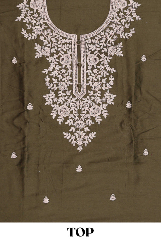 Brown georgette embroidered chudidhar material with contrast dupatta