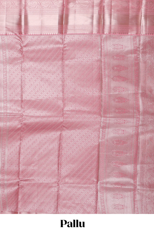 Pink semi banaras tissue saree with floral motifs and zari border