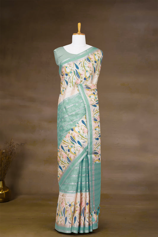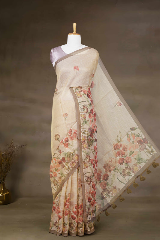This Exquisite Tissue Silk Saree Radiates Regal Charm With Its Rich Copper Orange - Gold Hue Interwoven With Intricate Geometric Pattern in Zari. Along With Blouse