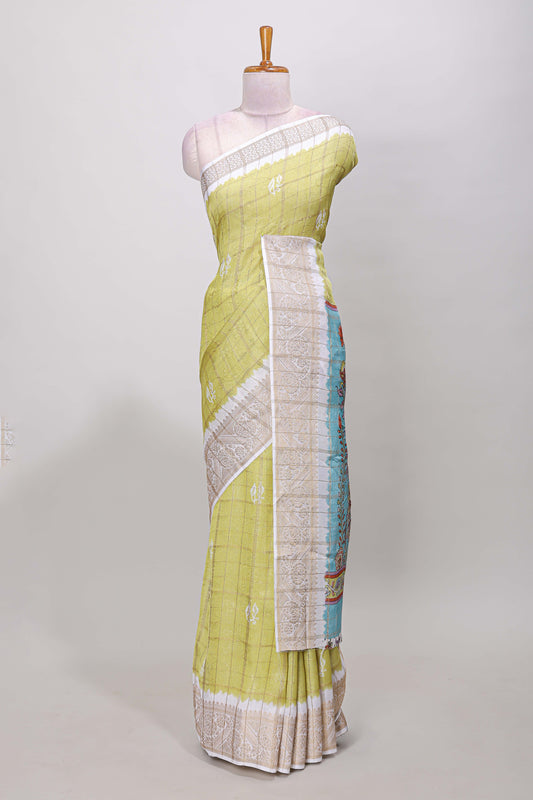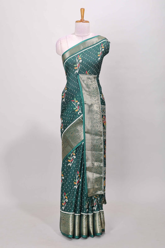 Green marsh mellow Ikkat floral and dotted butta saree with zari border