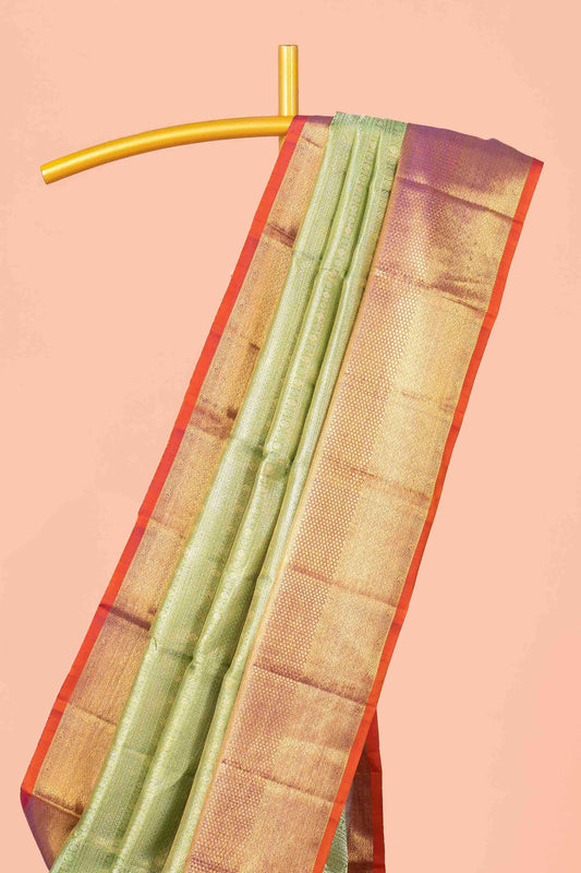 SaleMint Green Kancheepuram Pattu With Purple Zari Border And Contrast Rust Edge