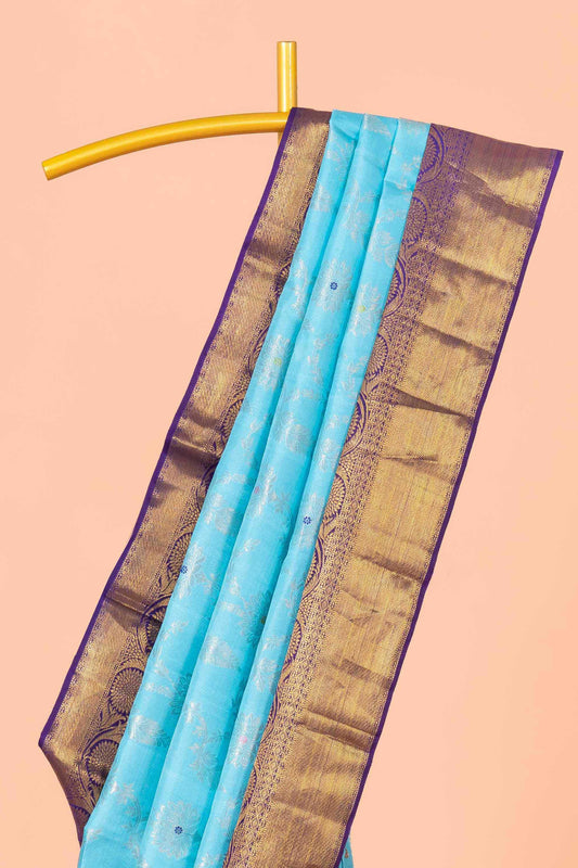 SaleTurquoise Blue Kancheepuram Pattu With Antique Zari Border And Jacquard Weave