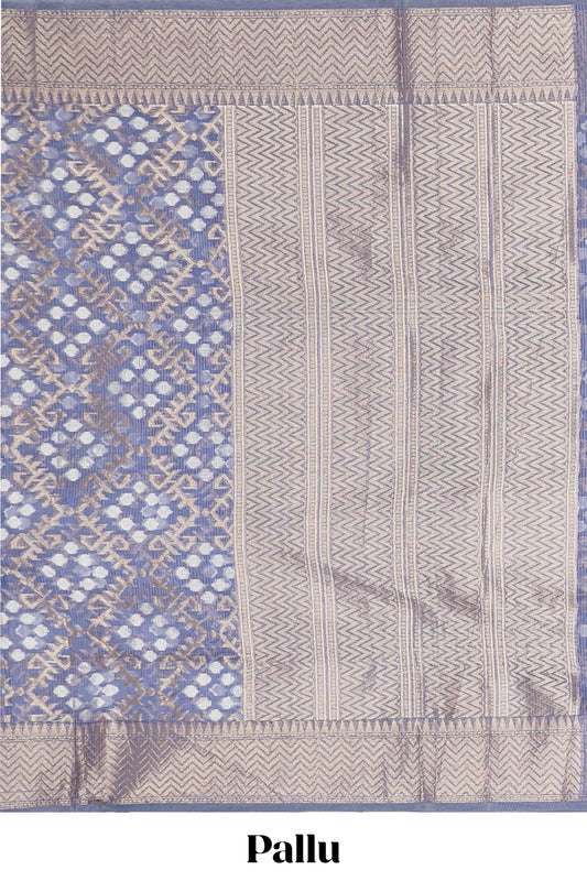 Grey geometric zari weaving kota cotton saree with zig zag zari border and pallu