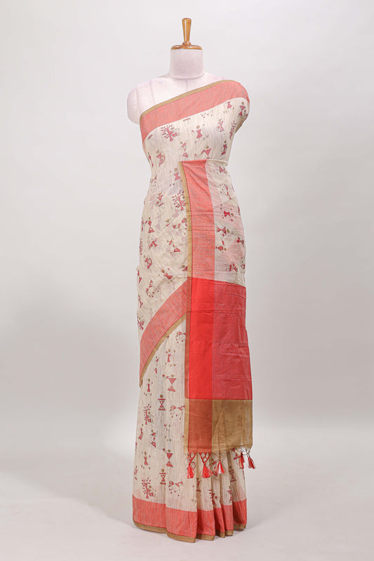Sandal warli design kota cotton saree with contrast border and matching blouse
