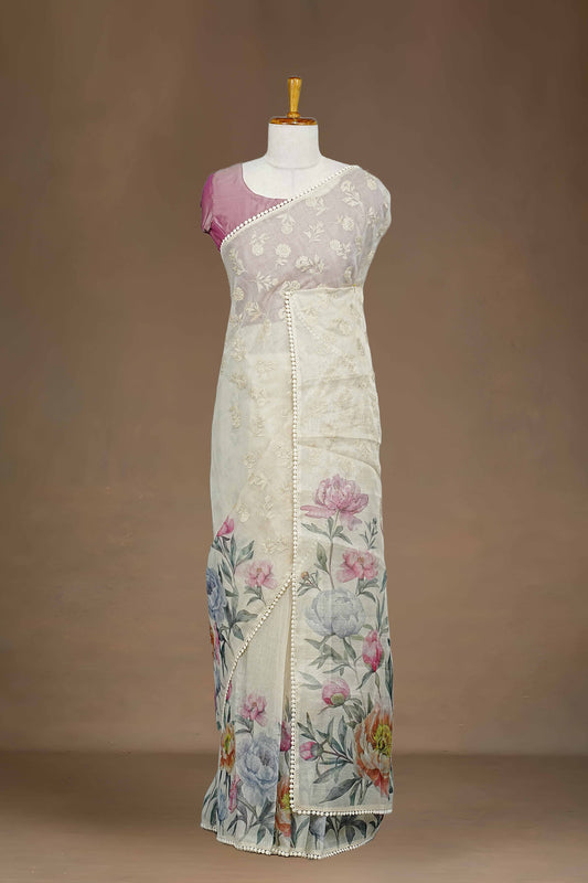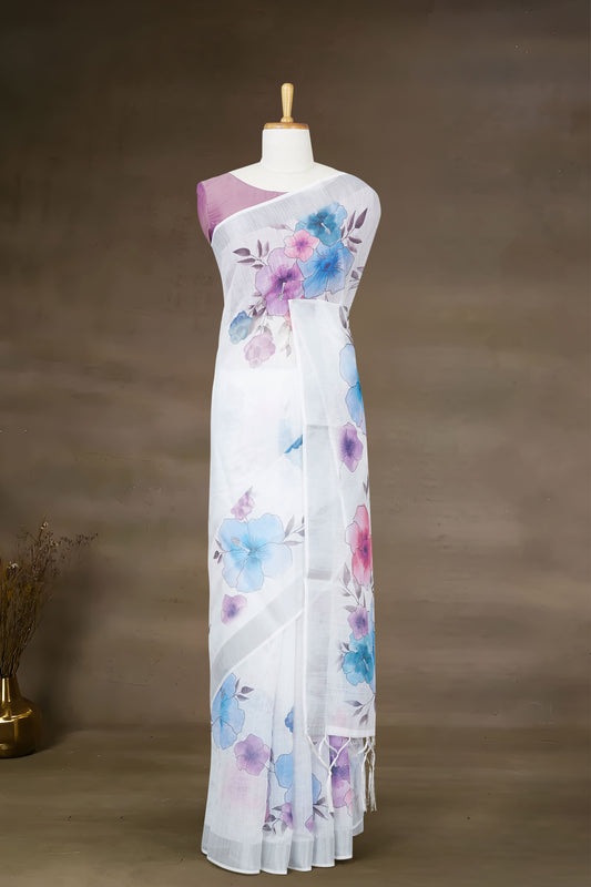 White Linen Saree