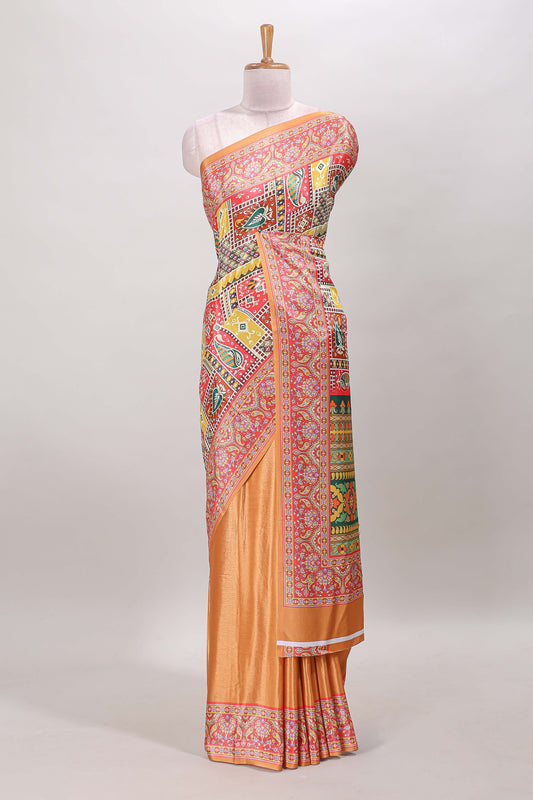 Peach geometric pattern & floral design masakali saree with self border and matching blouse