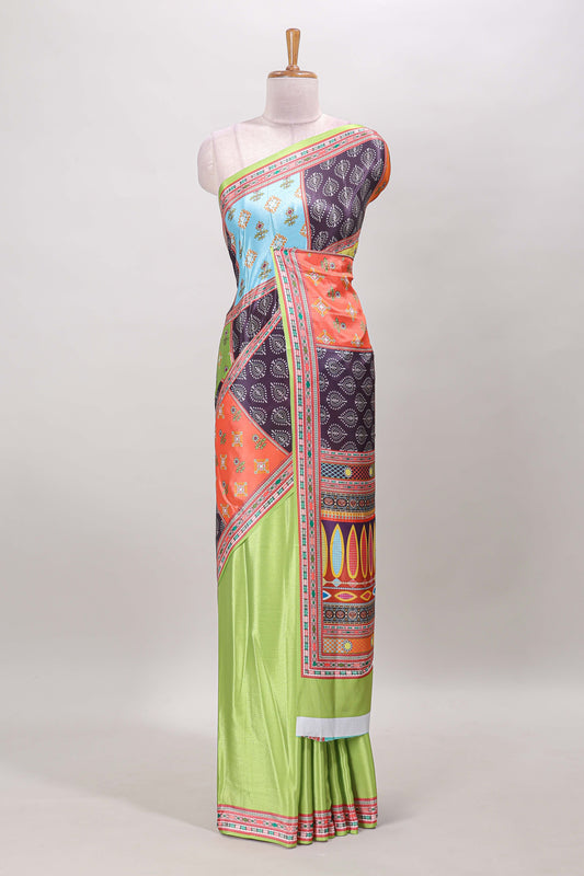 Green geometric pattern & floral design masakali saree with self border and matching blouse