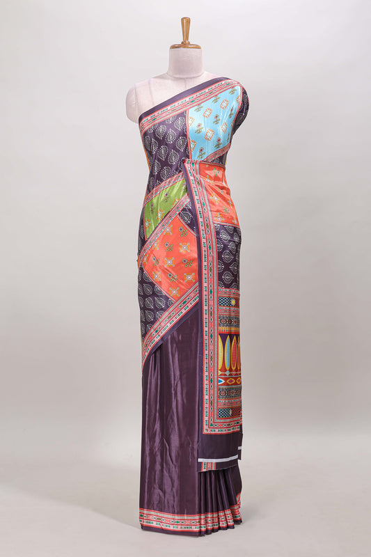 Magenta purple geometric pattern & floral design masakali saree with self border and matching blouse