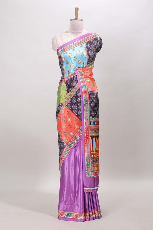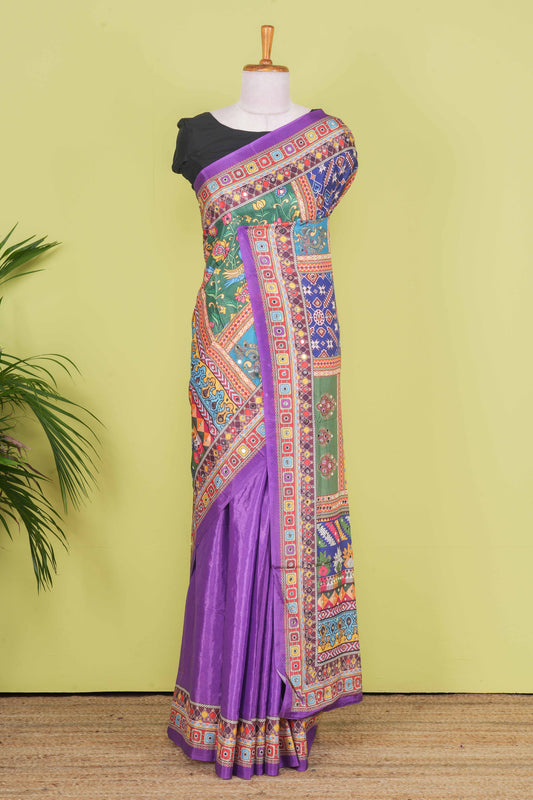 Dark lavender geometric pattern & floral design masakali saree with self border and matching blouse