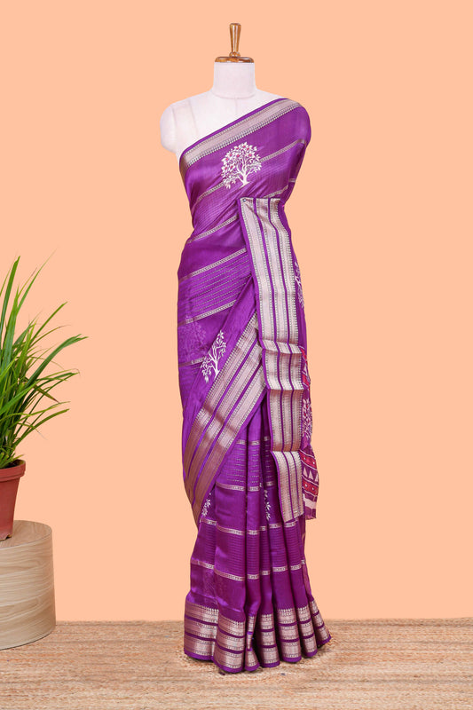 Violet Striped tree butta moss chiffon saree with self triple zari border and matching blouse