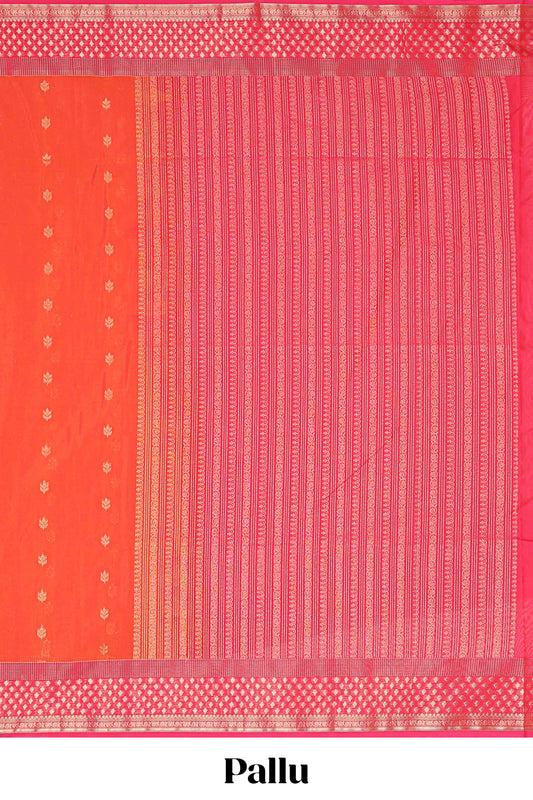 Orange floral zari butta semisilk cotton saree with contrast zari border and striped pallu