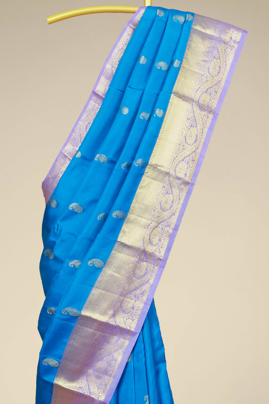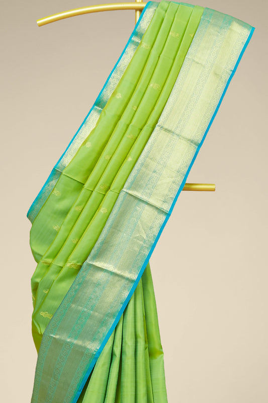 SaleKanchipuram Traditional Silk Saree in Bottle Green with Gold Zari Buttas and Self Border.