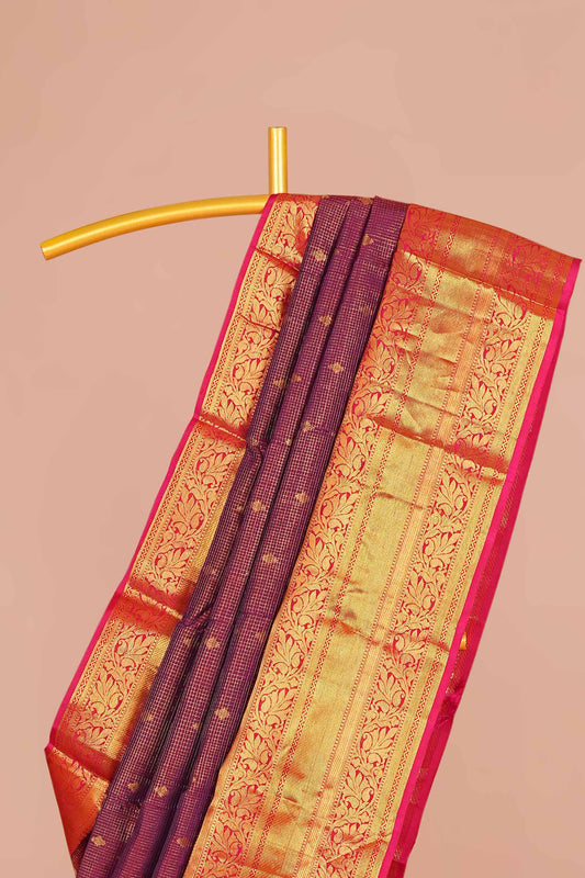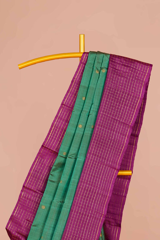 SaleGreen & Purple Checked Border With Butta Design Kanchipuram Pure Silk Saree