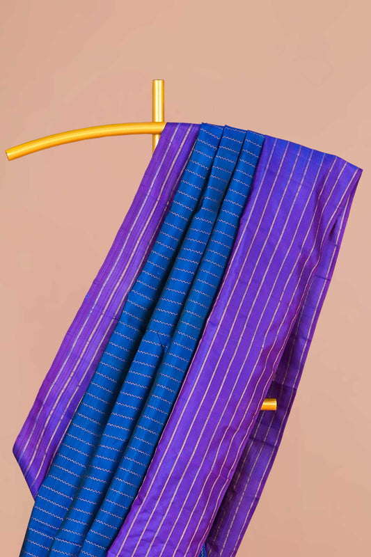 SaleRoyal Blue & Violet Striped Body Kanchipuram Pure Silk Saree