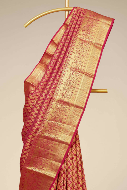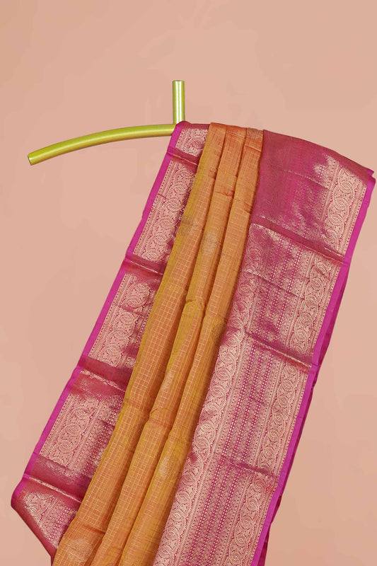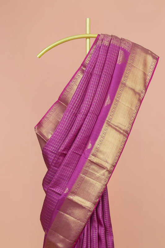 SaleKanchipuram Vairaoosi and Checks Silk Saree in Magenta Pink with Gold Zari and Self Border